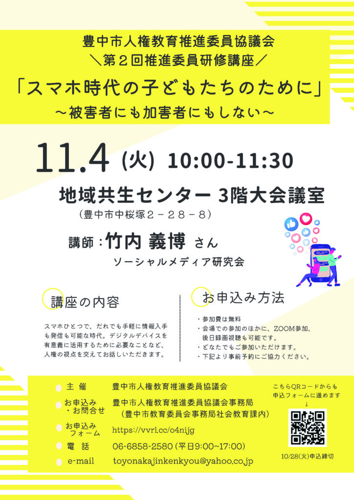 スマホひとつで、誰でも手軽に情報を入手•発信が可能な時代。有意義な活用のために人権の視点を交えてのお話です。
